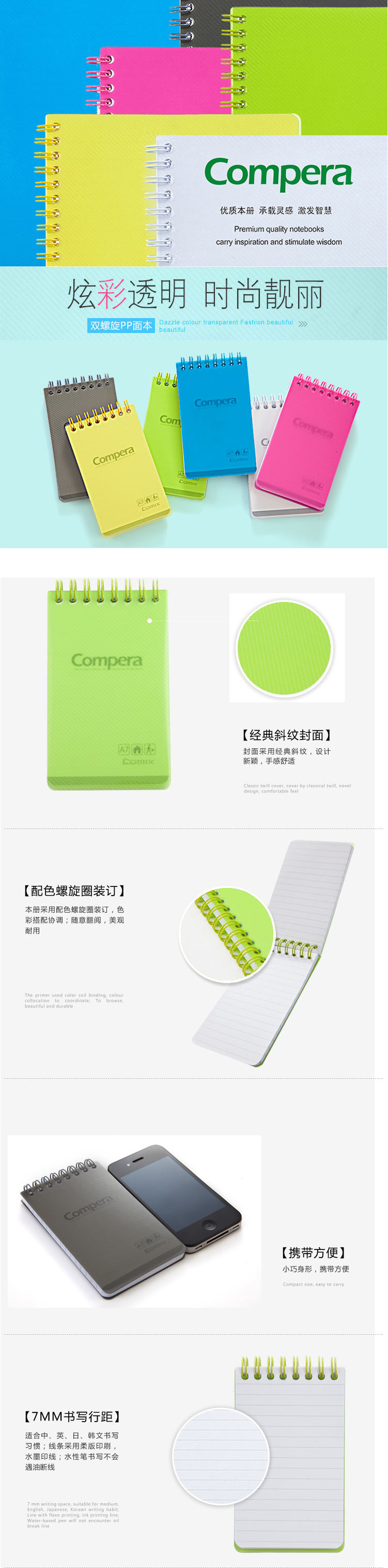 齐心(COMIX)CPA7801 Compera 双螺旋PP面本 A7 80张 颜色随机