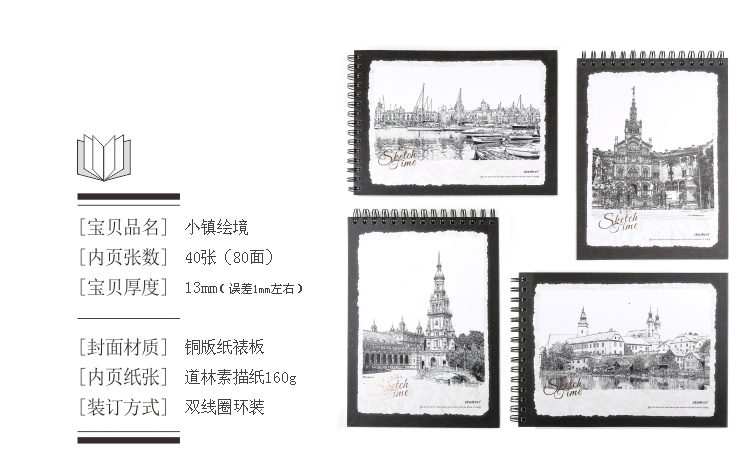 商品名称:斯图 素描本小镇绘境8K-40页复古欧式大绘画本绘图本空白本子