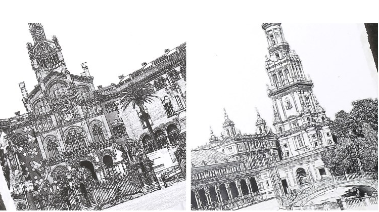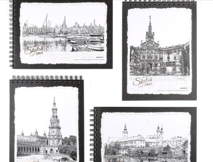 斯图 素描本小镇绘境8K-40页复古欧式大绘画本绘图本空白本子