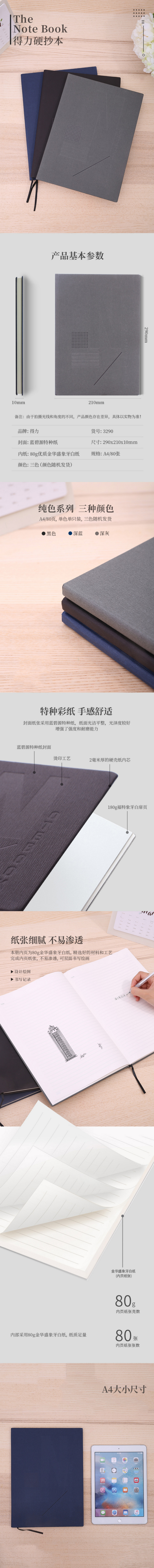 商品名称:得力(deli)3290 高档硬抄本 290mm*210mm-80张/本 颜色随机 单本装