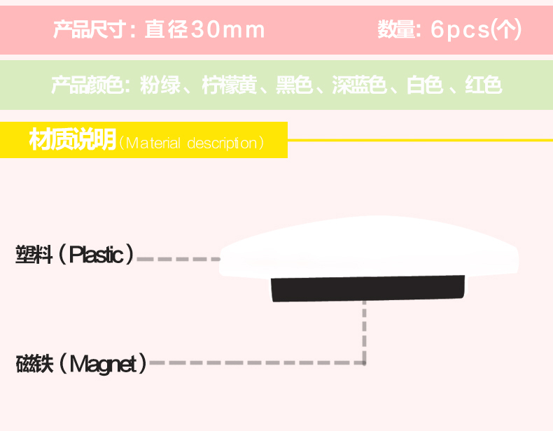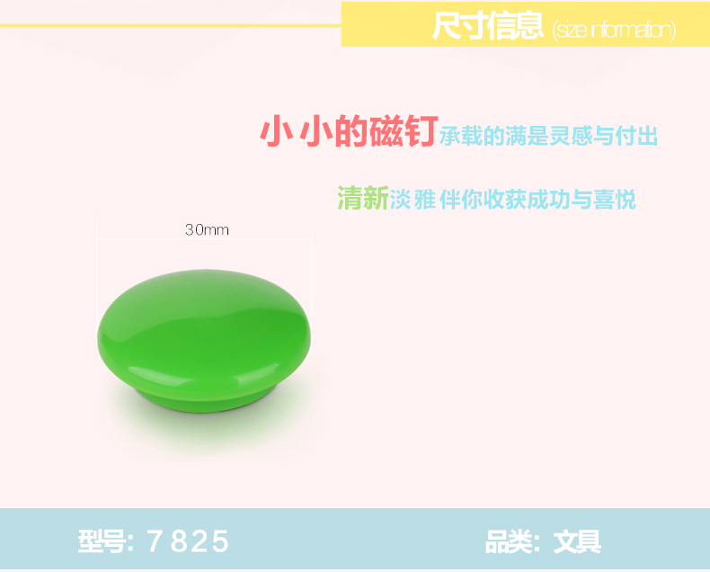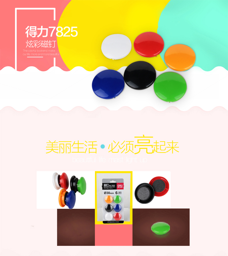 商品名称:得力(deli)7825 白板磁扣/吸铁石/磁粒 磁力强 30mm 6粒装