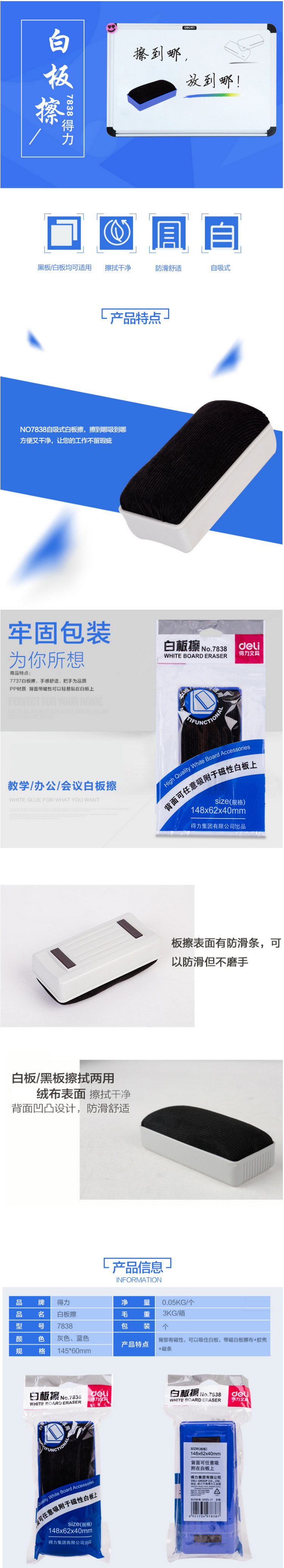 商品名称:得力(deli)7838 大号白板擦 12个/套 单套 颜色随机