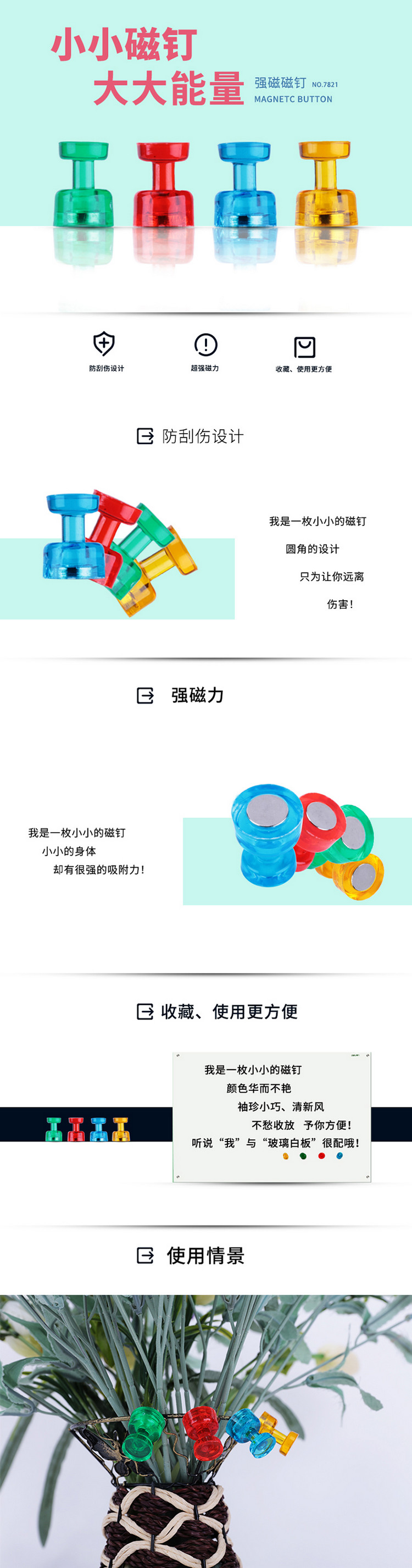 商品名称:得力(deli)7821 磁粒 玻璃白板专用磁钉 4粒/卡 单卡