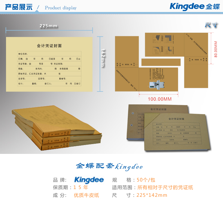 商品名称:金蝶RM01B 225*142mm 记账凭证封面 凭证包角 凭证封皮