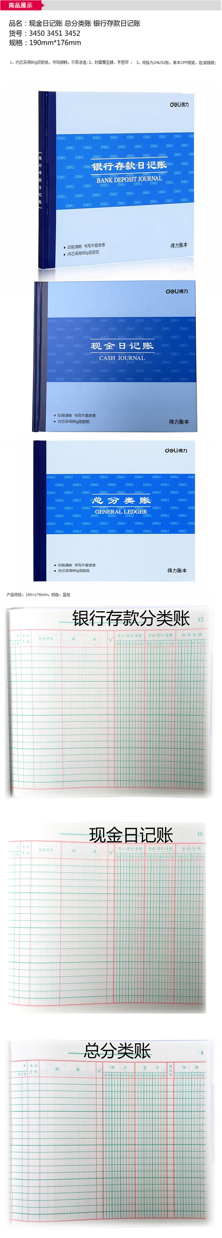 商品名称:得力(deli)3452 24K银行存款日记账(蓝) 100页/本 3本装