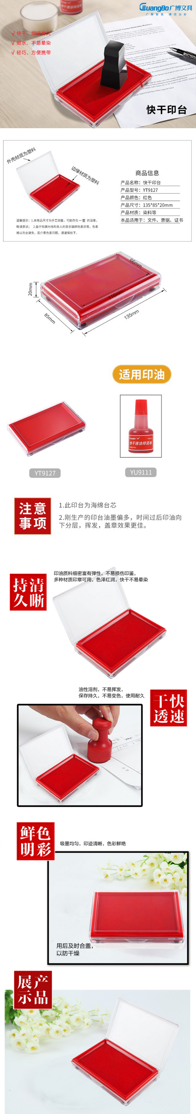 商品名称:广博(GuangBo)WYT9127 快干印台 10个/包 单包 红色