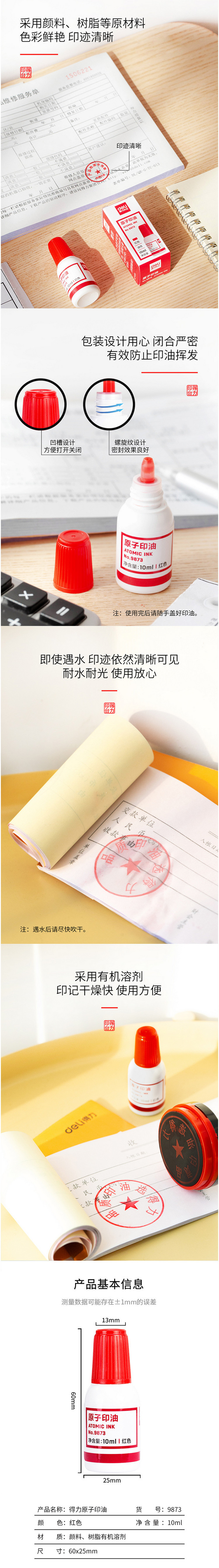 商品名称:得力(deli)9873 原子印油 10ml/瓶 单瓶 红色