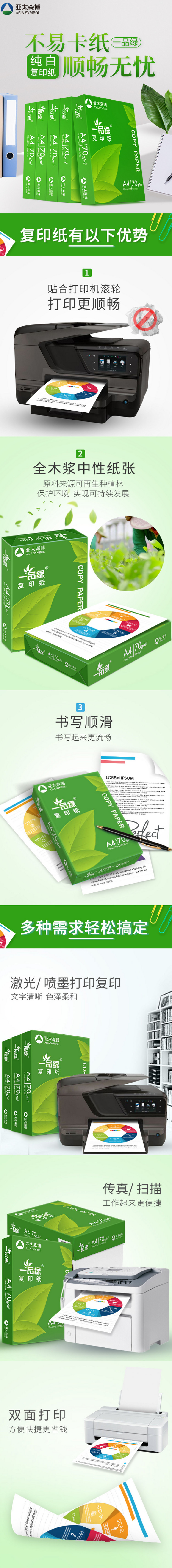 商品名称:亚太森博(Asia Symbol)A4 70g 一品绿 打印复印纸 500张/包 8包/箱