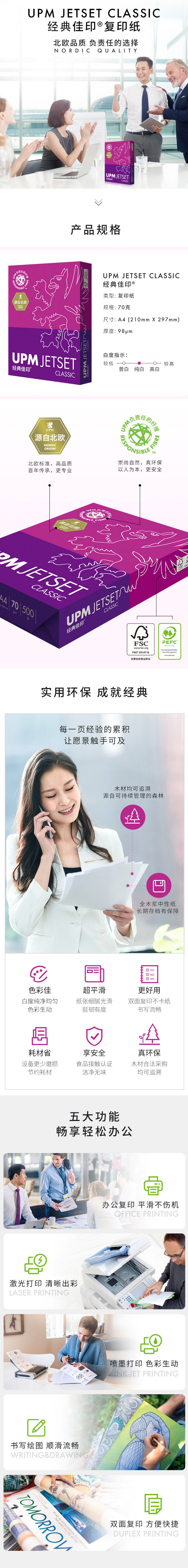 商品名称:UPM 70g A4 经典佳印 复印纸 纯白 8包/箱