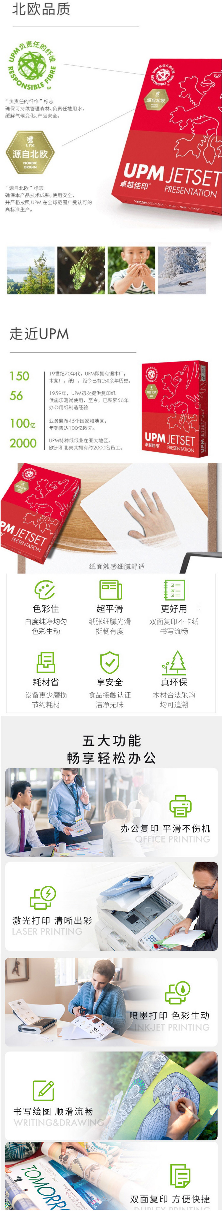 商品名称:UPM ZYJY-85-5 卓越佳印 复印纸 高白 85g A4 5包/件