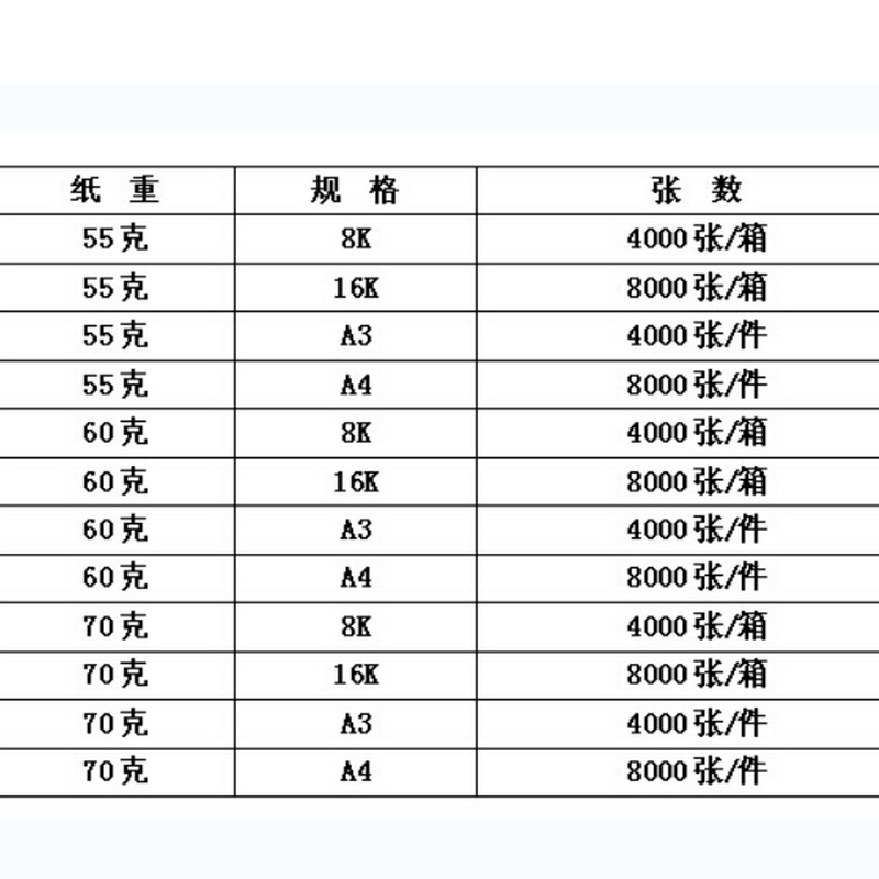 商品名称:美利纸 8K 70g 复印纸 试卷速印纸一体机纸 4000张/令