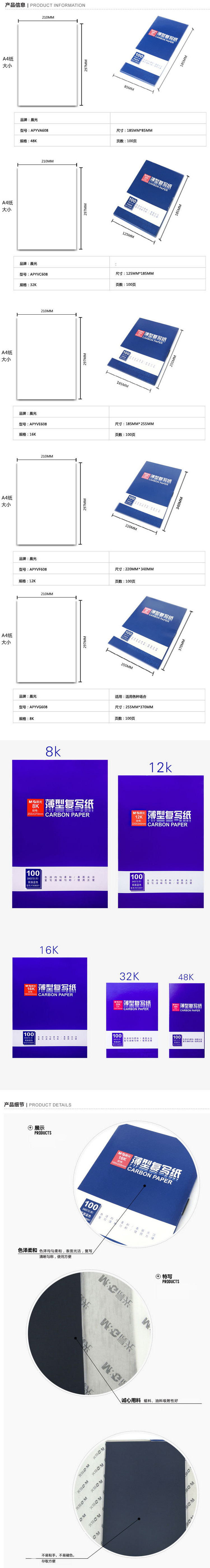 商品名称:晨光(M&G)APYVE608 16K薄型双面复写纸 100张/本 5本装 蓝色