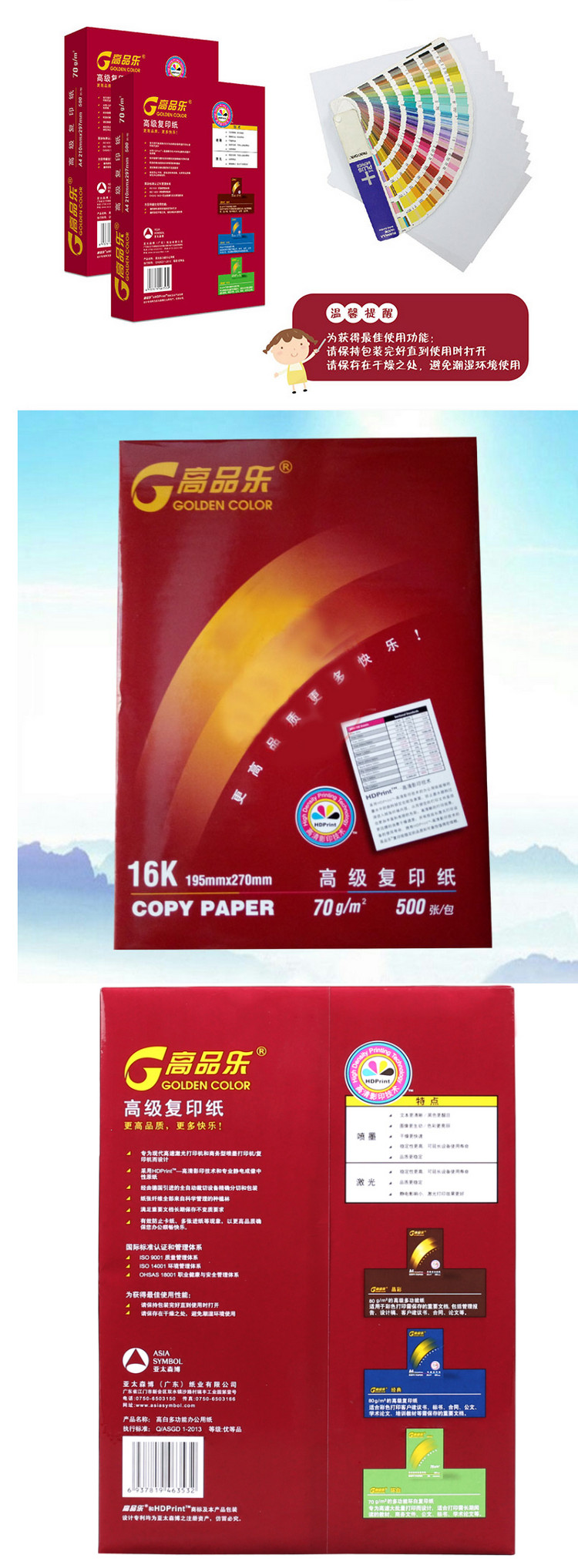 商品名称:高品乐 16K 70G 复印纸 500张/包 8包/箱