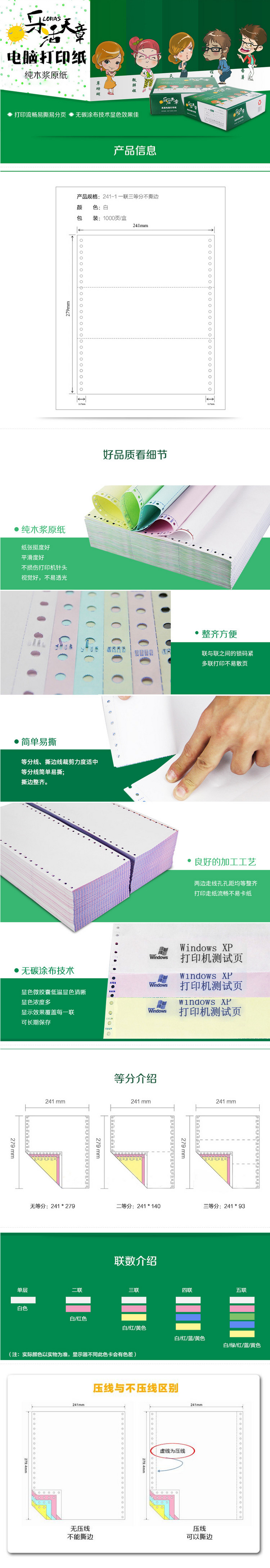 商品名称:天章(TANGO)乐活天章241-1-1/3 彩色打印纸 一联三等分不撕边(色序:白 1000页/箱) 十五天质保