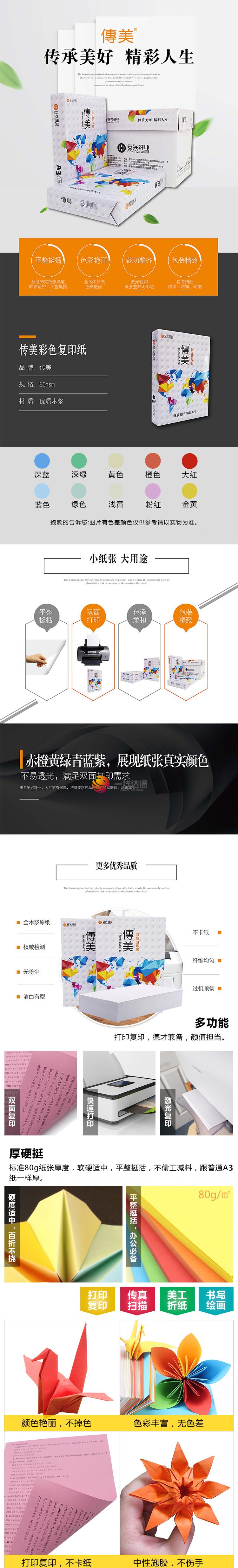 商品名称:传美 A3彩色打印纸 80克 500张/包 粉色