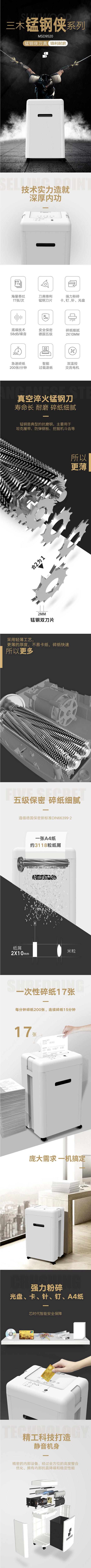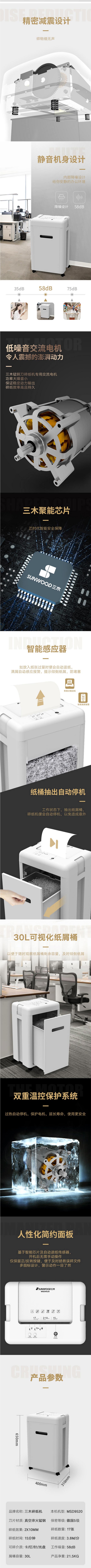 商品名称:三木(SUNWOOD)MSD9520 碎纸机 锰钢侠系列 连续碎纸15分钟 单次碎纸17张 30升纸箱容量 五级保密 碎状2x10mm米粒状 一年保修