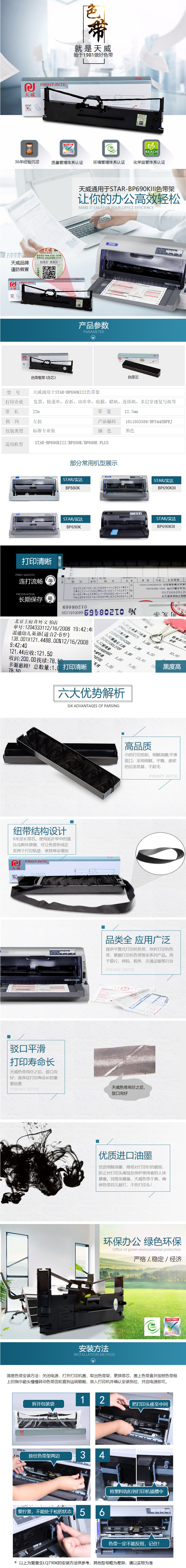 商品名称:天威(PrintRite)STAR BP690KIII 高品质兼容色带架含芯22m 单支 黑色