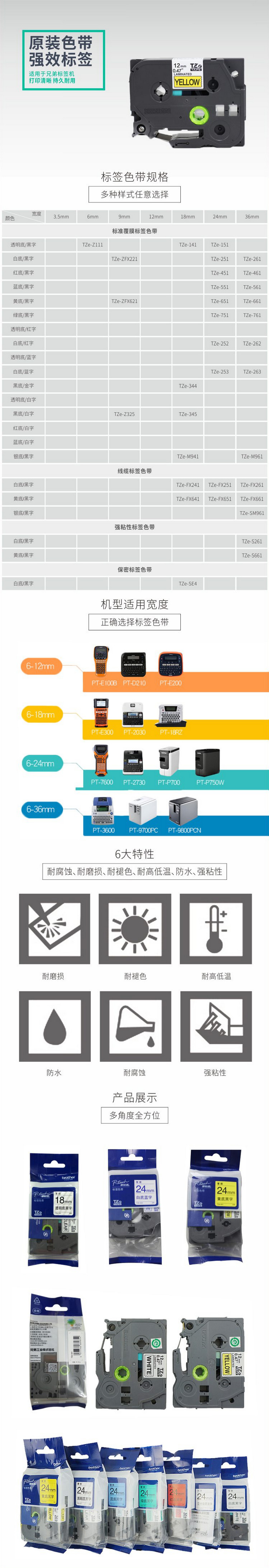 商品名称:兄弟(brother)TZe-ZFX621 9mm线缆黄底黑字标签 TZe-FX621升级版