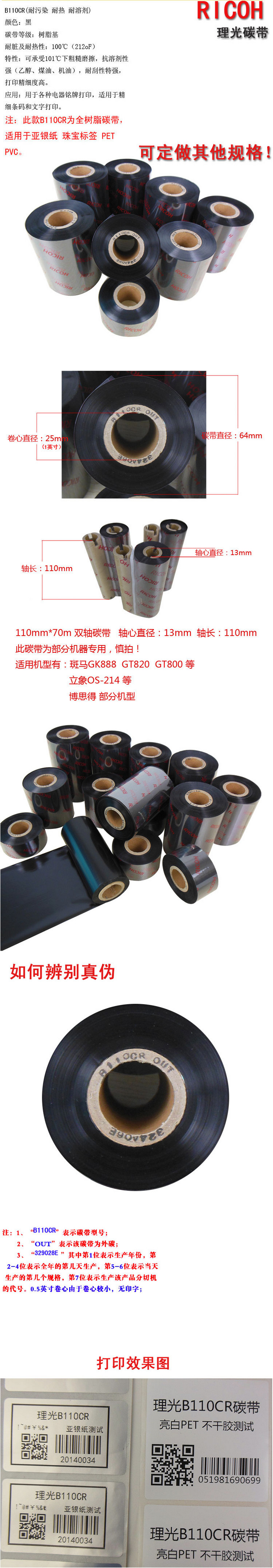 商品名称:理光(RICOH)B110CR 黑色色带 全树脂碳带(B110CR 60mm*300m)