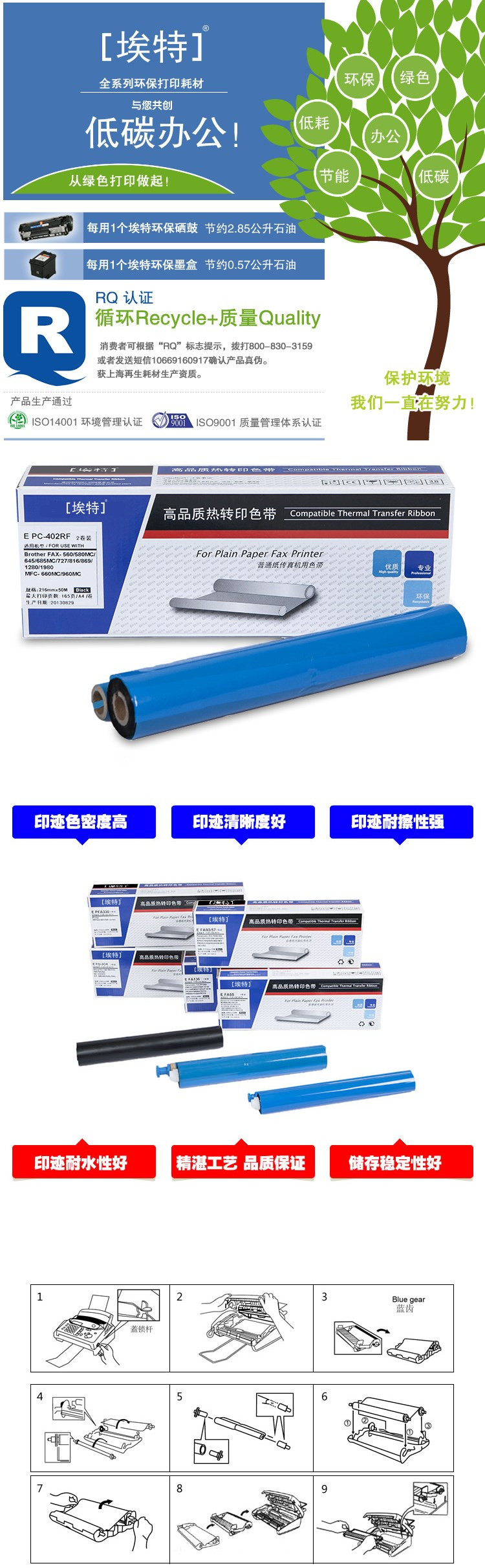 商品名称:埃特(elite_value)E PC-402RF 黑色碳带 适用兄弟 FAX-829/839MC/859/869MC/FAX-560/580MC 两支装