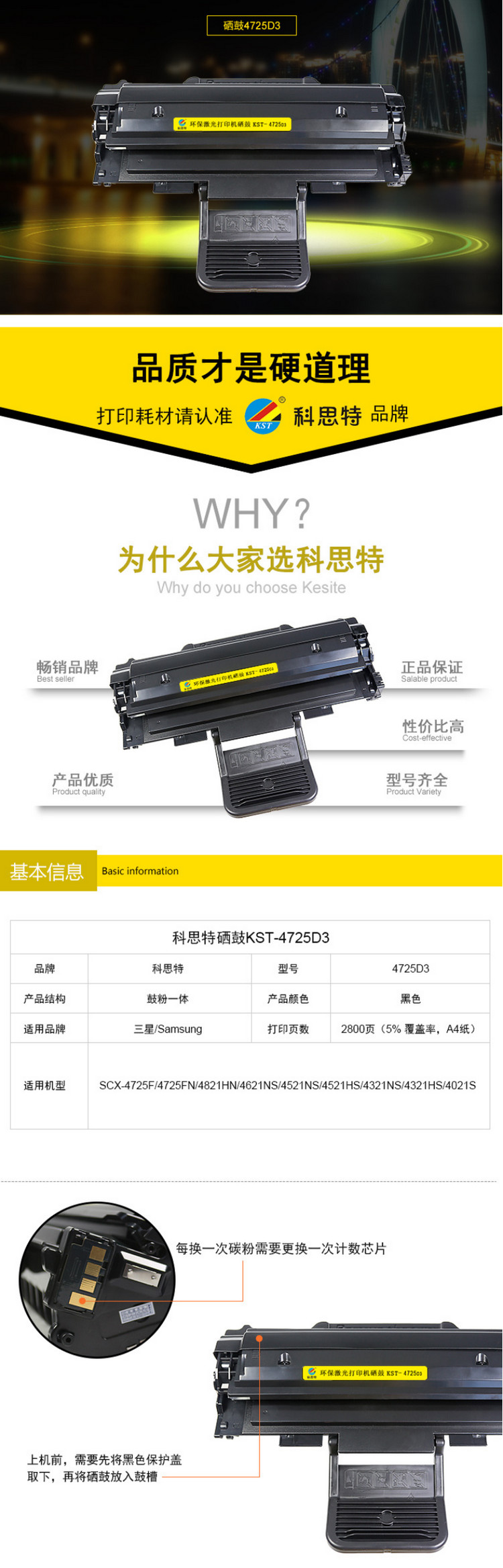 商品名称:科思特(KST)K 4725 硒鼓 适用三星4725F/FN/4821HN/4621NS/4521NS/HS 专业版 单支 黑色