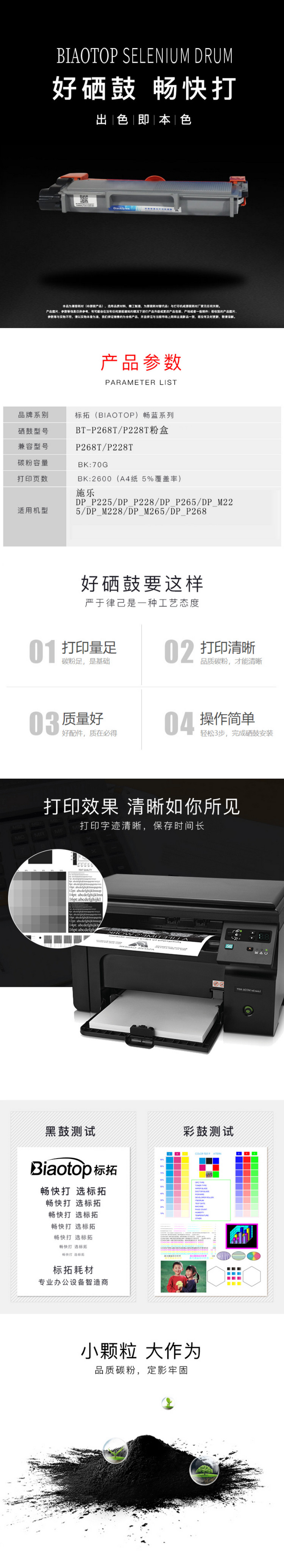 商品名称:标拓 (Biaotop) P228T/P268T粉盒适用施乐M228db /M228z/M268dw/P268b/P268d打印机 畅蓝系列 单支