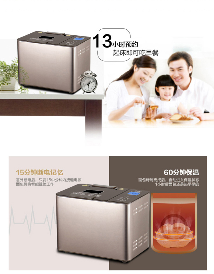 商品名称:美的(Midea)TLC2000 面包机 全自动家用和面机 多功能不锈钢机身