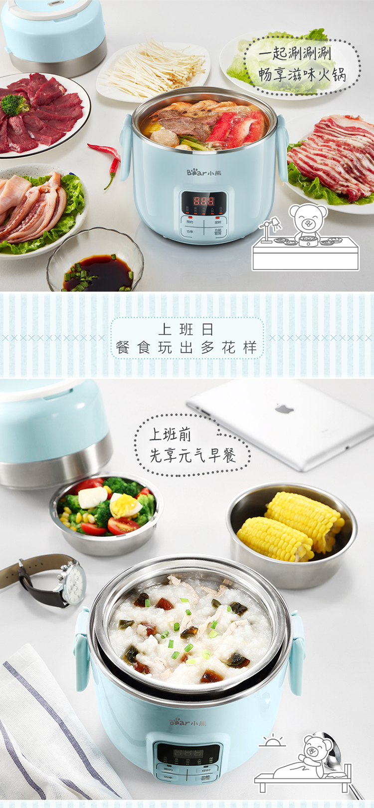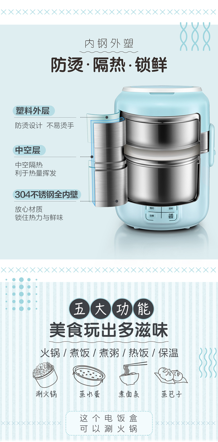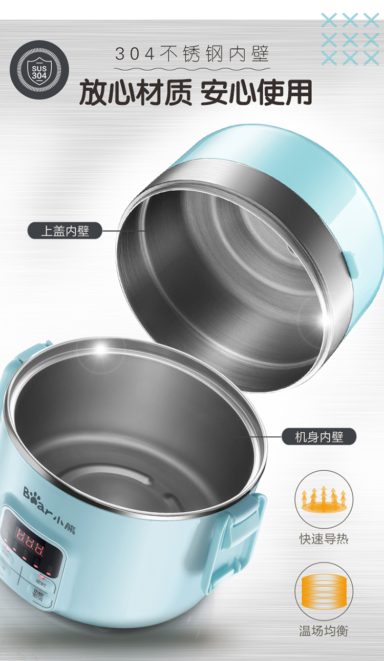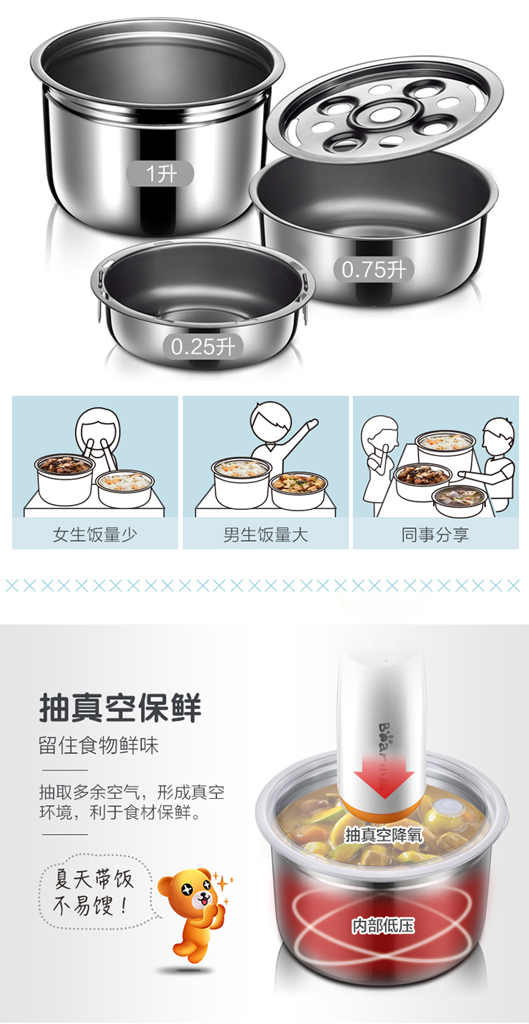 商品名称:小熊(Bear)DFH-B20J1 电热饭盒 可插电保温加热蒸煮不锈钢3层抽真空电饭盒