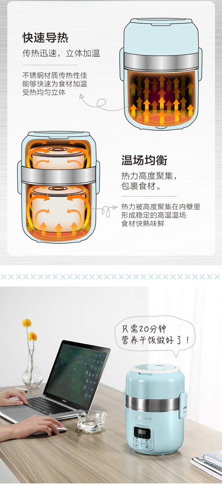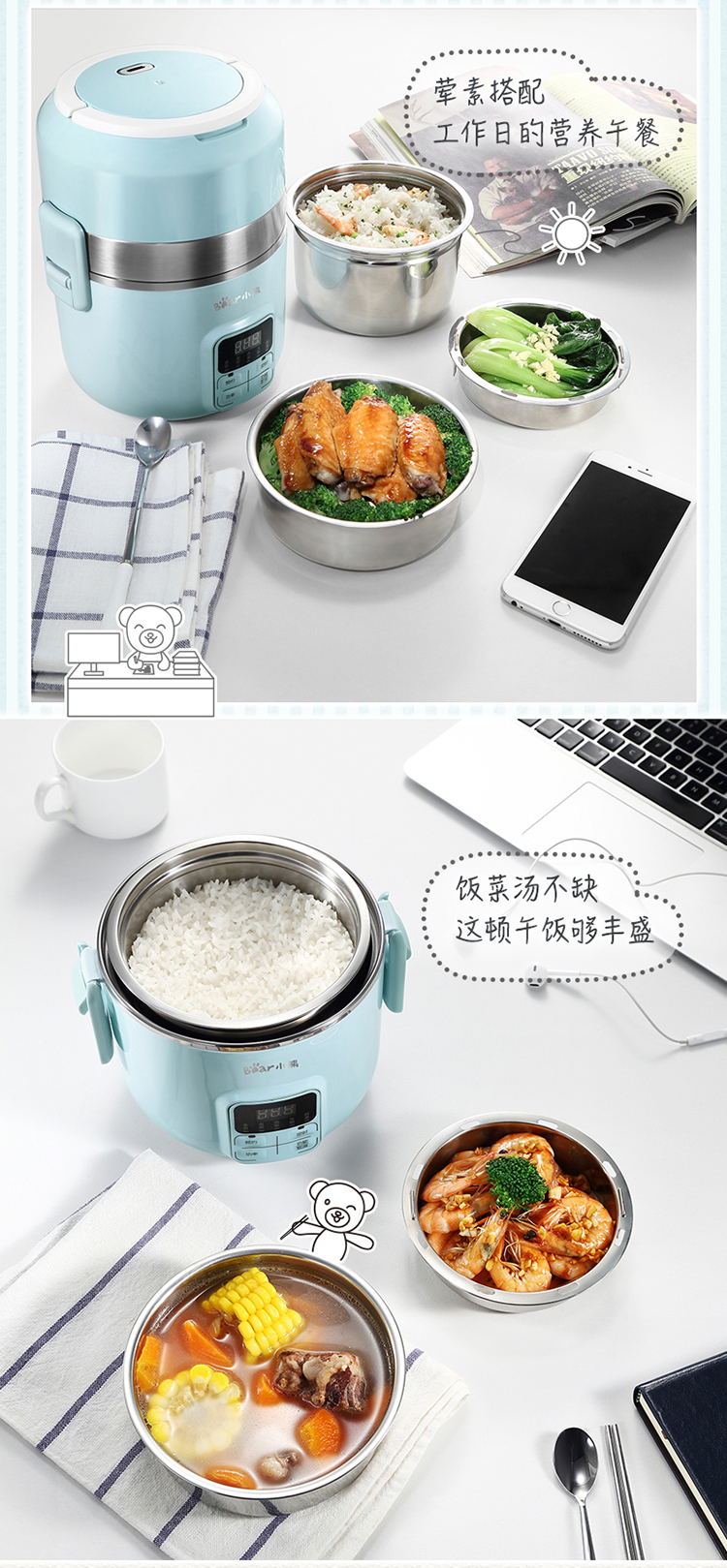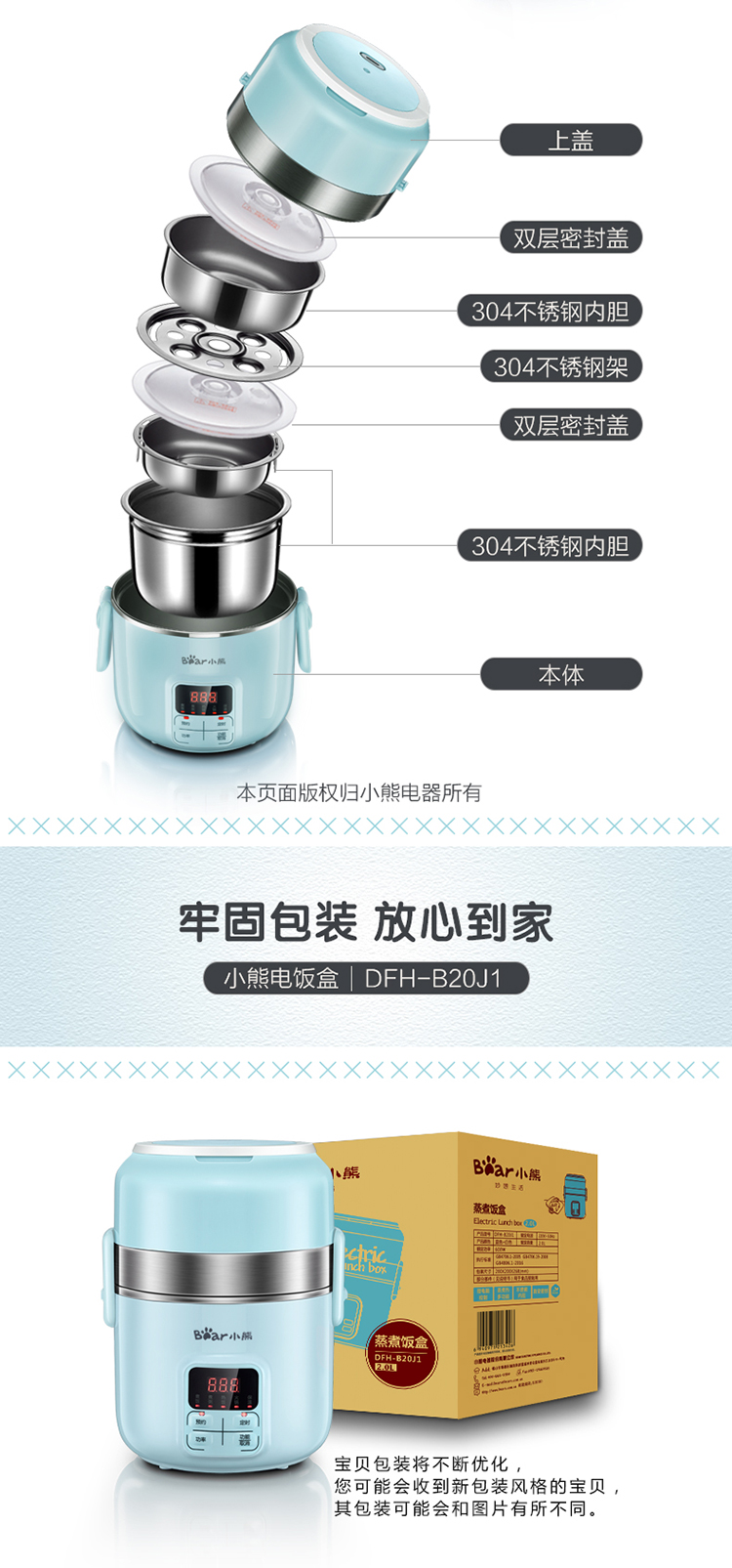 商品名称:小熊(Bear)DFH-B20J1 电热饭盒 可插电保温加热蒸煮不锈钢3层抽真空电饭盒