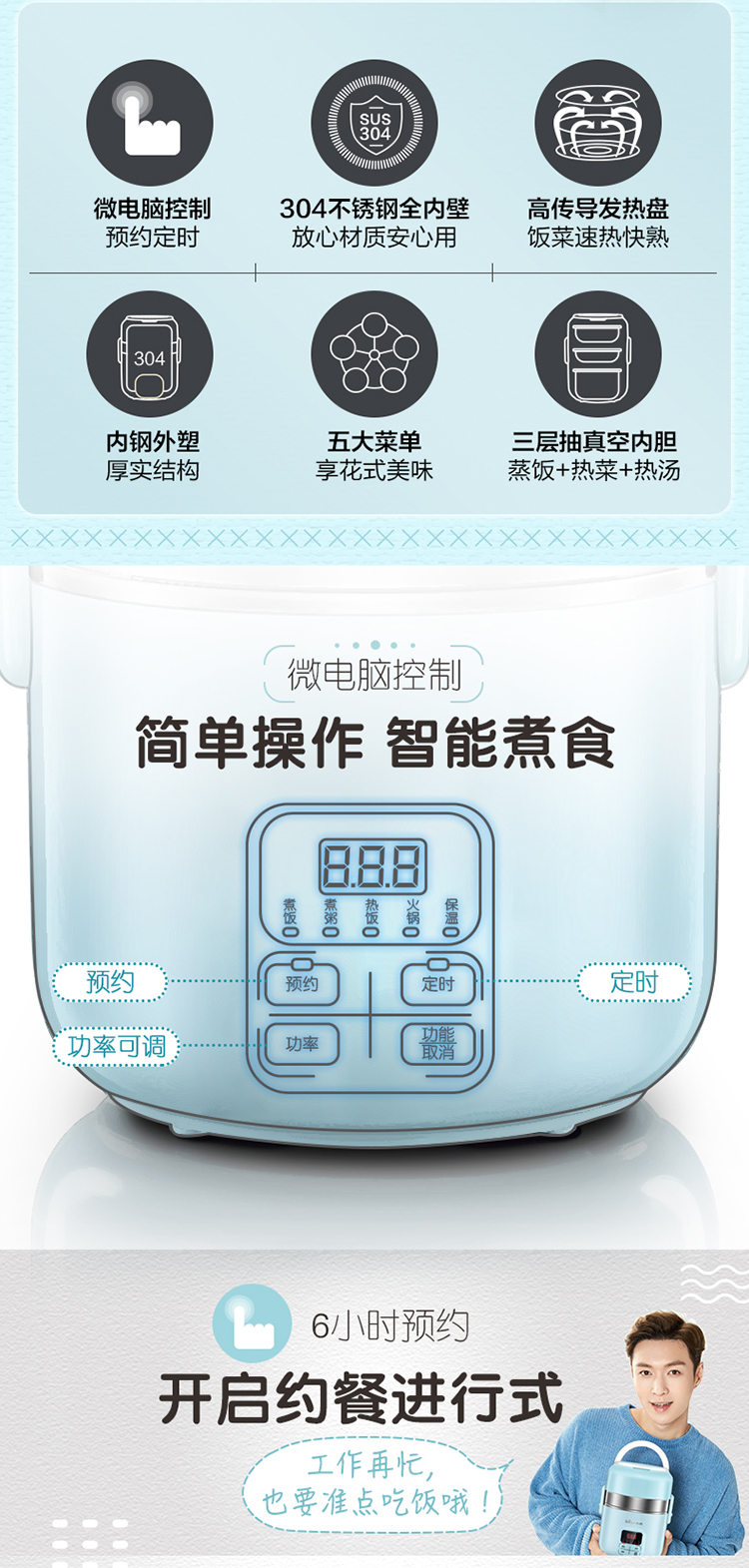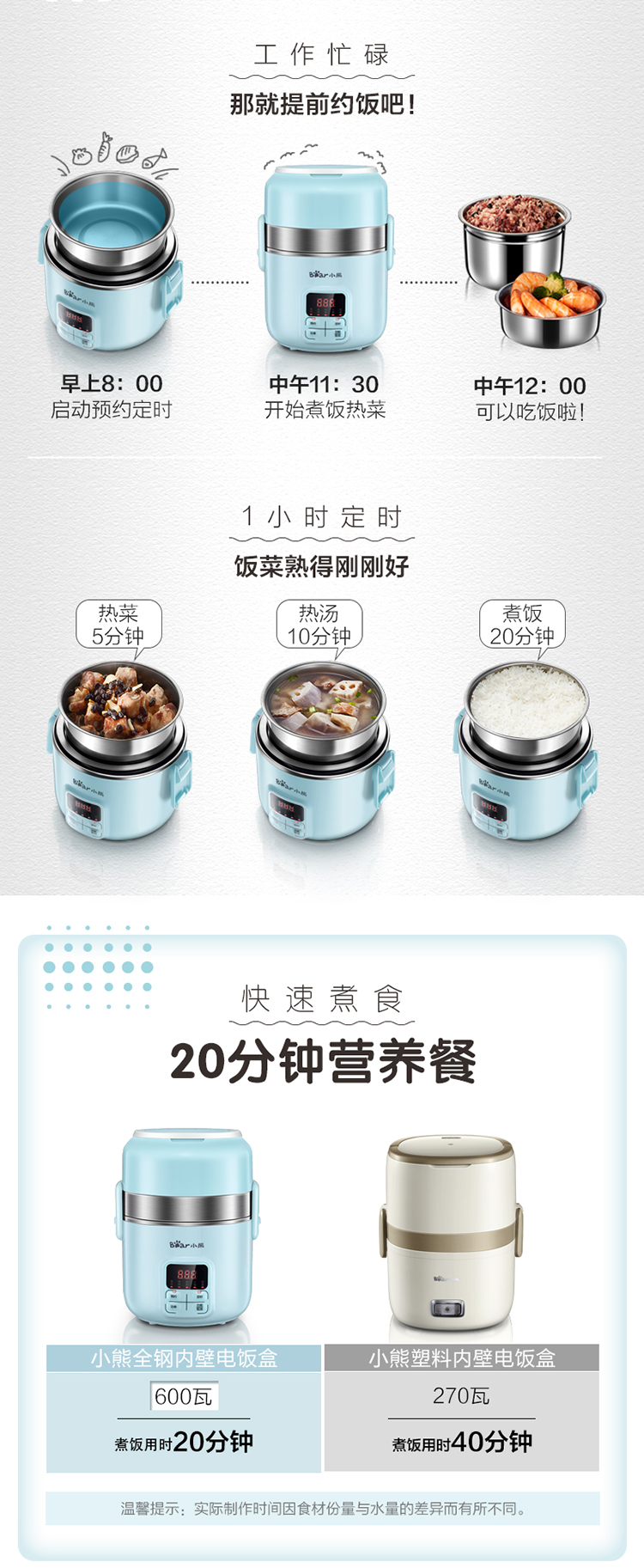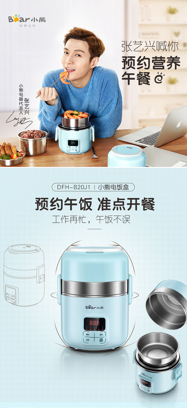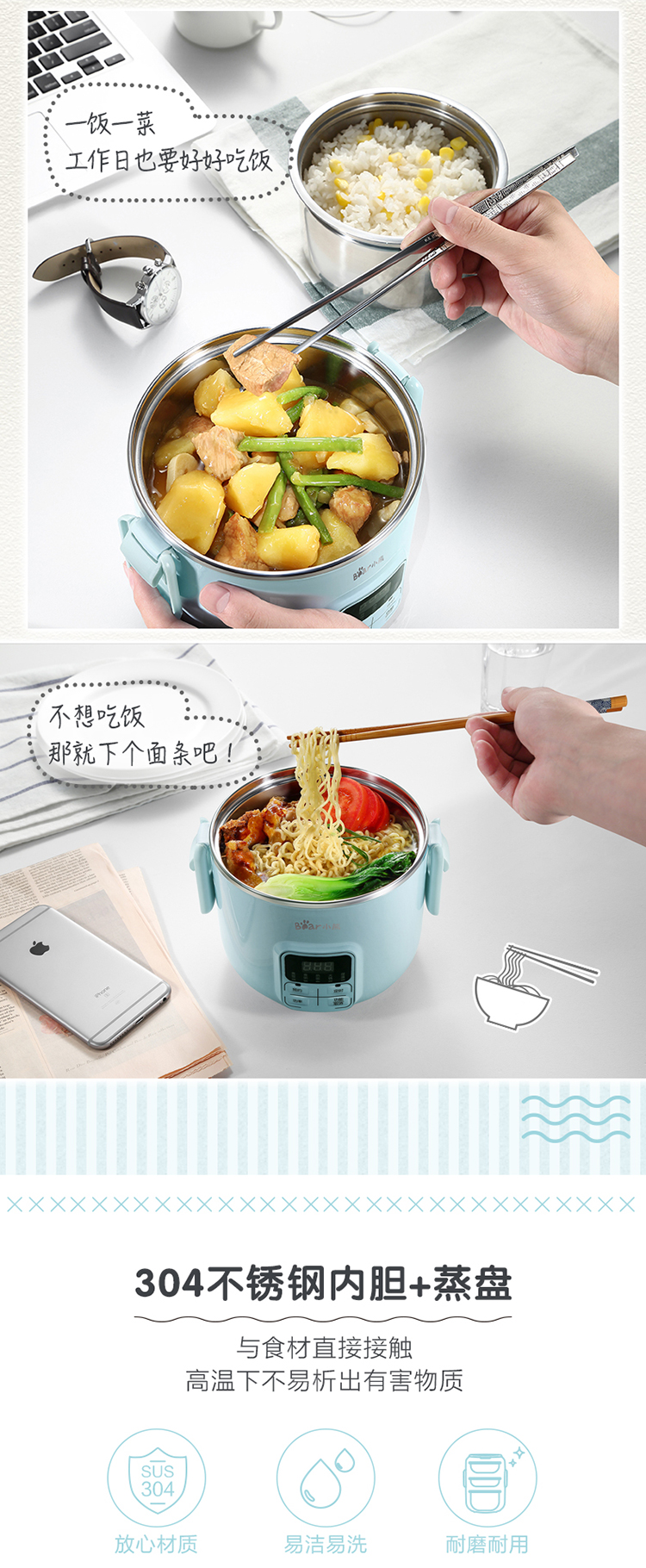 商品名称:小熊(Bear)DFH-B20J1 电热饭盒 可插电保温加热蒸煮不锈钢3层抽真空电饭盒