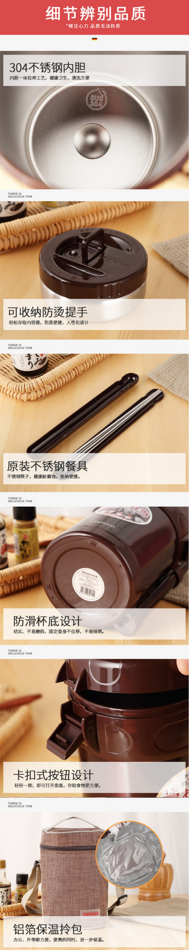 商品名称:泰福高(TAFUCO)T0080 不锈钢保温饭盒 铝箔保温拎包 深棕色