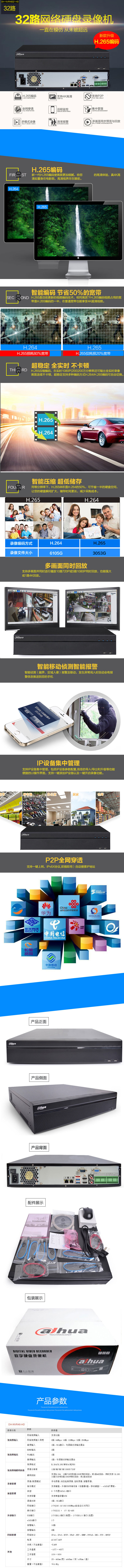 商品名称:大华 DH-NVR4832-HDS2 32路网络硬盘录像机 8盘位H.265高清监控主机 无内存 录像机