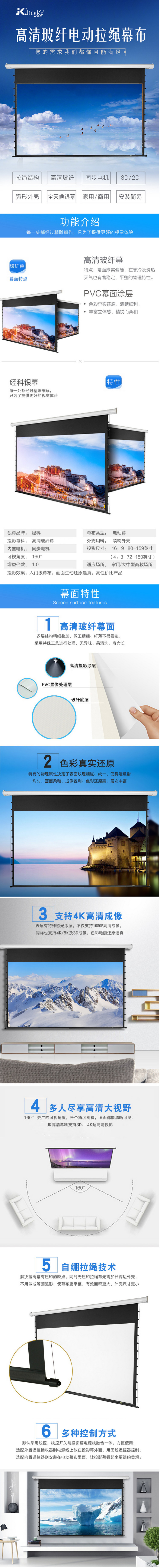 商品名称:经科(JK)s1mk2 150英寸 电动投影仪幕布 16:10比例 一年保修
