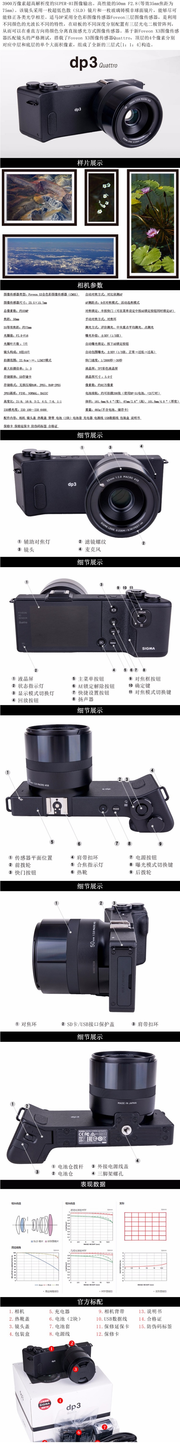 商品名称:适马(SIGMA)DP系列 DP3 Quattro 便携式数码相机 官方标配