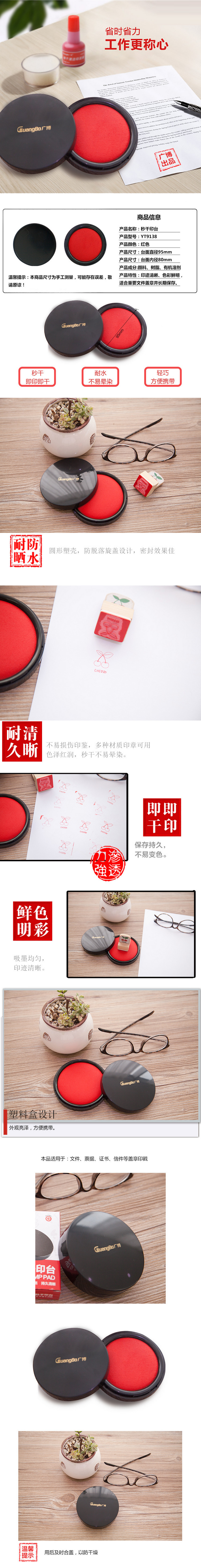 商品名称:广博(GuangBo)YT9138 印台 直径95mm秒干印台1个 红色