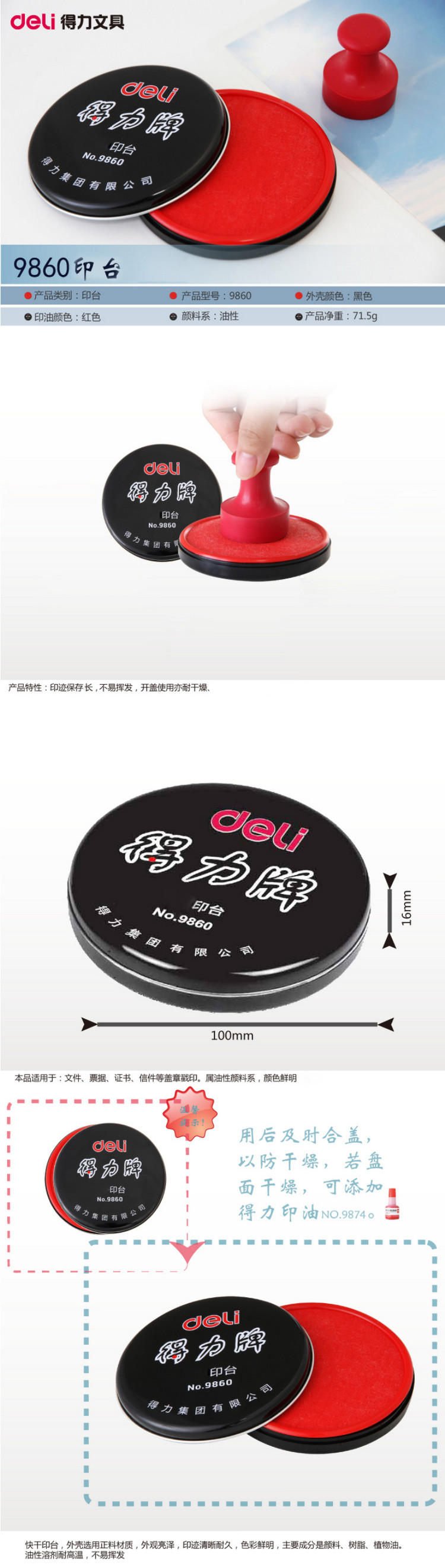 商品名称:得力(deli)9860 快干印台 单只 红色