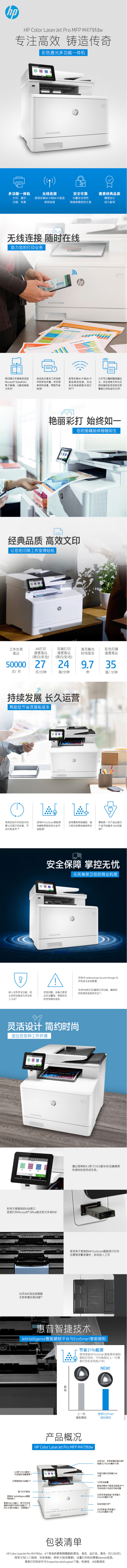 商品名称:惠普(HP)Color LaserJet Pro MFP M479fdw A4彩色激光多功能一体机 打印/复印/扫描/传真 27页/分钟 自动双面打印 适用耗材:HP 416A/416X系列 一年保修